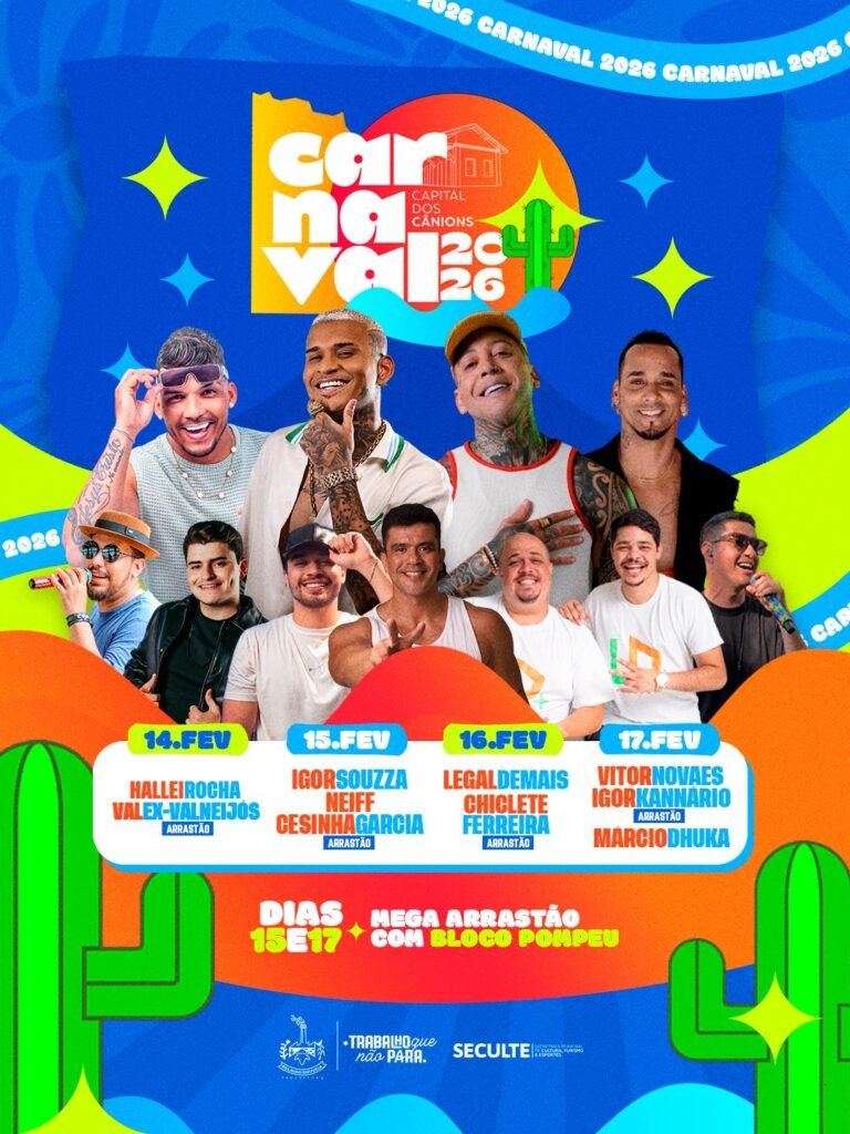 Com uma estrutura que promete movimentar a economia local e atrair turistas de toda a região, a prefeitura de Delmiro Gouveia oficializou a programação completa do Carnaval 2026. A folia contará com quatro dias intensos de apresentações musicais e os tradicional arrastão que marcam o carnaval sertanejo.