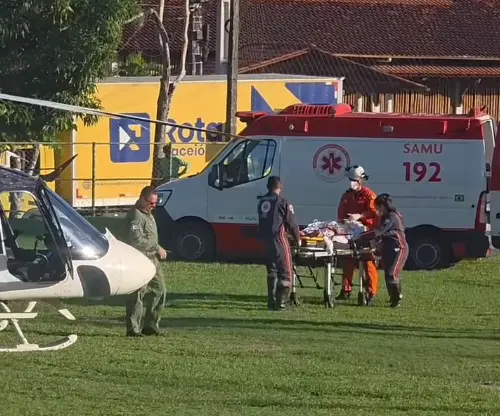 Diante do risco iminente de morte, o helicóptero Falcão 05 realizou a transferência aeromédica da vítima para o Hospital Geral do Estado (HGE), em Maceió, com interceptação da equipe da Unidade de Suporte Avançado (USA) 06.