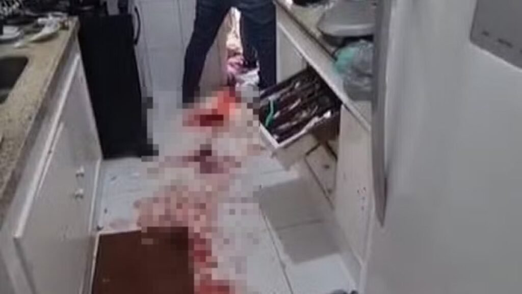 Durante a discussão, ele pegou uma faca de grande porte na cozinha e passou a ameaçar a irmã, dizendo que ia matá-la. Nesse momento, segundo relatos, o sobrinho da mulher, que é autista, entrou na frente para impedir o ataque e acabou sendo atingido no abdômen. Imagens do local mostram o chão do cômodo cheio de sangue.