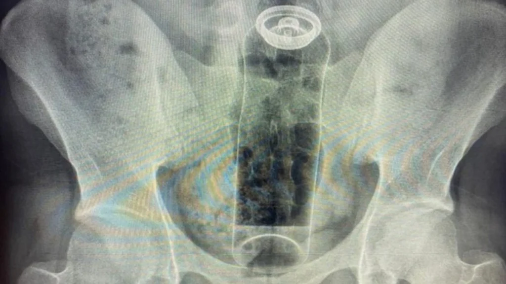 Segundo o especialista, o paciente relatou que o incidente ocorreu durante uma “brincadeira” sexual. A embalagem acabou subindo para o reto e, após tentativas frustradas de retirá-la em casa, o jovem buscou ajuda médica.