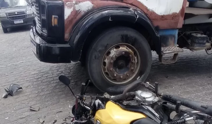 MOTOCICLISTA FICA GRAVEMENTE FERIDO APÓS COLISÃO COM CAÇAMBA