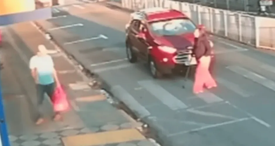 MOTORISTA FOGE APÓS ATROPELAR MULHER DE BENGALA NA FAIXA DE PEDESTRES