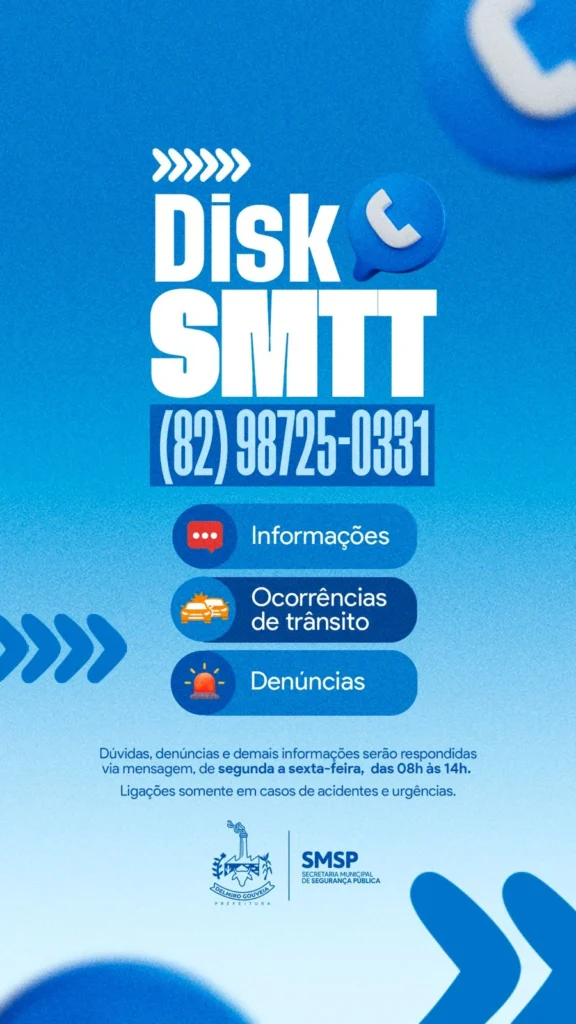 SMTT DIVULGA NOVO NÚMERO DE WHATSAPP PARA ATENDIMENTO AO PÚBLICO DE DELMIRO GOUVEIA