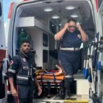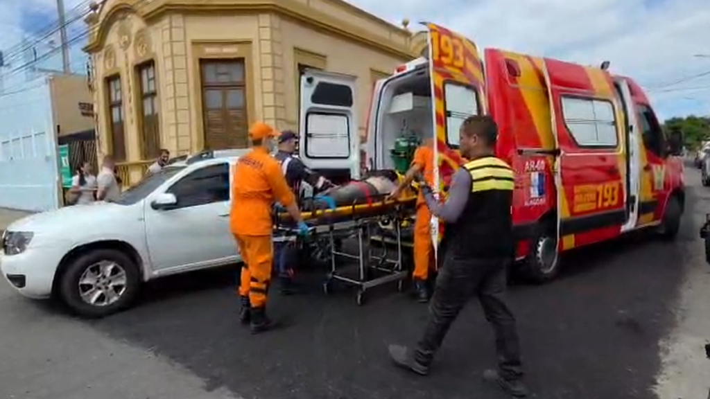VIATURA DA PM E MOTO POR APP BATEM EM CRUZAMENTO E HOMEM É SOCORRIDO